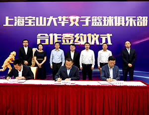 9月4日,上海宝山大华女子篮球俱乐部合作签约仪式在宝山区机关大楼举行。市竞技体育训练管理中心、宝山区体育局和大华集团签署合作协议,这是三方第三次携手,共同开启上海宝山大华女篮新一轮的合作历程。